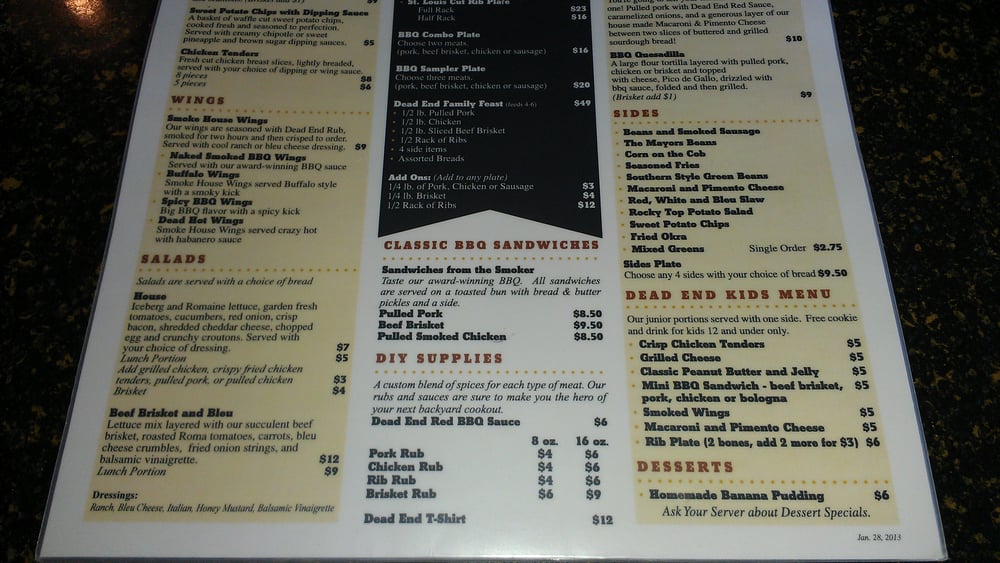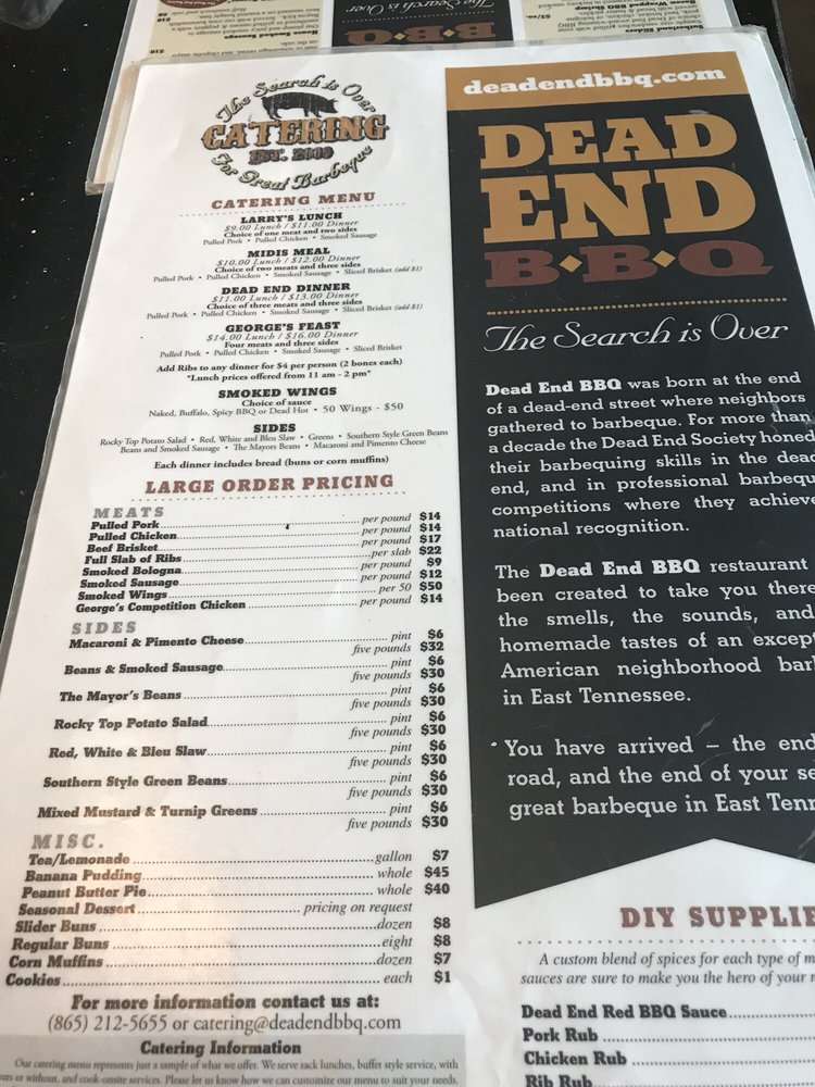 Welcome to Dead End BBQ, a culinary gem tucked away in Knoxville, Tennessee. This restaurant offers an extensive menu that promises to tantalize your taste buds with an array of mouthwatering BBQ options. From tender smoked pulled chicken to the sensational burnt ends, each dish showcases the rich, smoky flavors that define authentic barbecue.